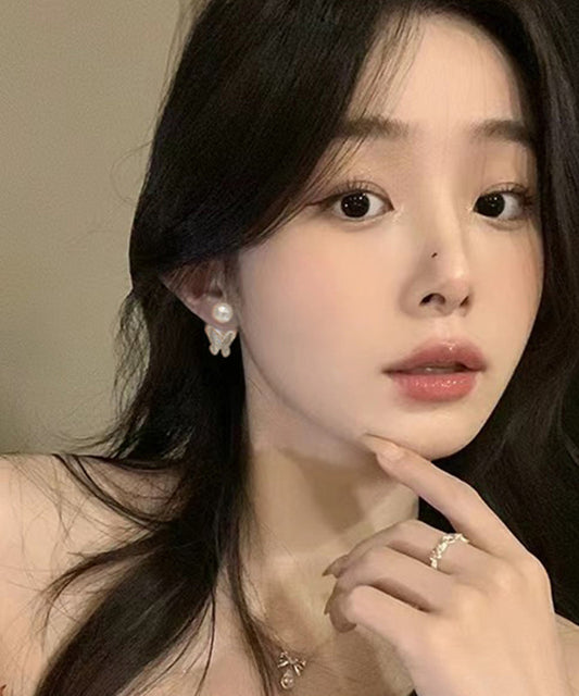 Boucles d'oreilles à tige élégantes en cuivre blanc avec perles papillon ZZ050