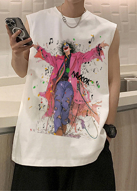 Tanks Print O-Neck Mens Black Sleeveless Cotton French