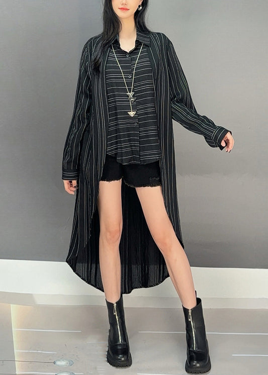 Loose White Asymmetrical Striped Button Cotton Shirt Fall