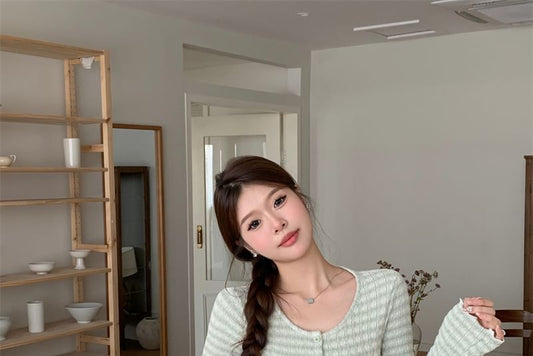 Round Neck Striped Button Jacket / High Waist Mini Pencil Skirt