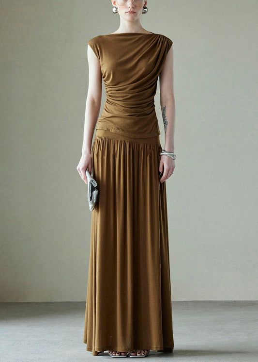 Original Design Two Simple Pieces Set Cotton Wrinkled Brown