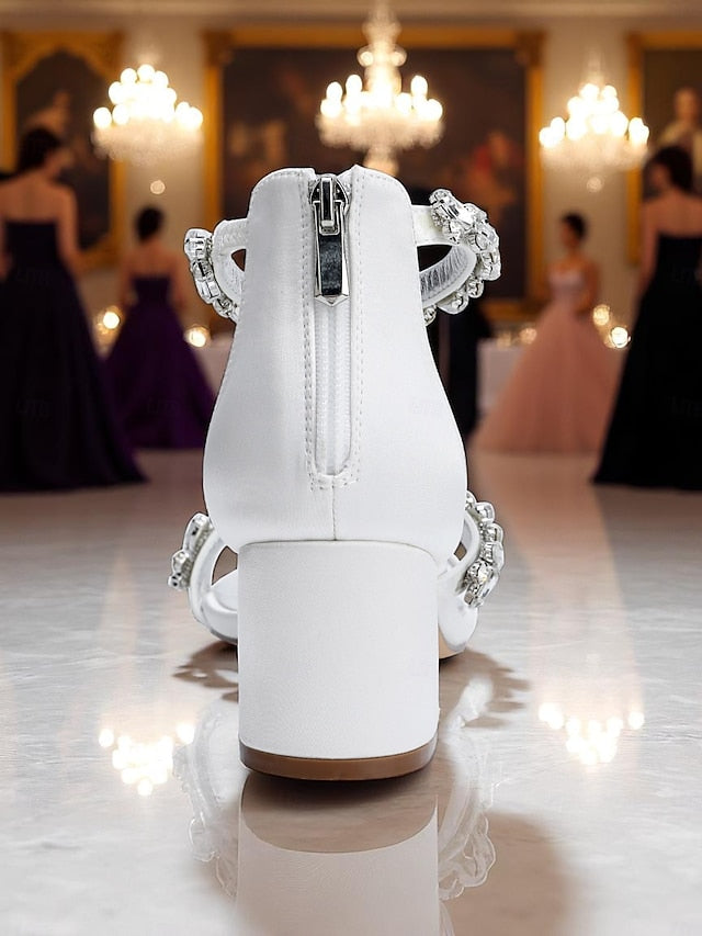 Gender: Women's, Category: Sandals, Style: Fashion, Sexy, Occasion: Party, Wedding, Toe Shape: Open Toe, Upper Materials: Satin, Lining Materials: Synthetic Leather, Outsole Materials: Rubber, Embellishment: Rhinestone, Season: Winter, Fall, Summer, Spring, Size Suggestion: standard size, select your usual size, Closure Type: Lace-up, Heel Height(inch): 2.17, Heel Type: Chunky Heel,