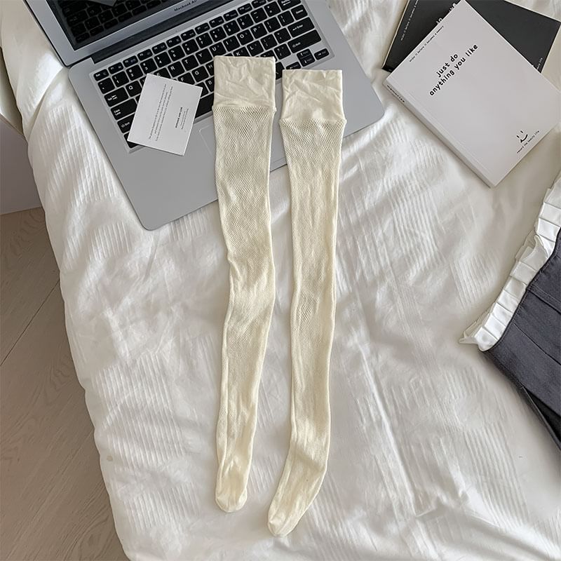 Dotted Mesh Over-the-Knee Socks