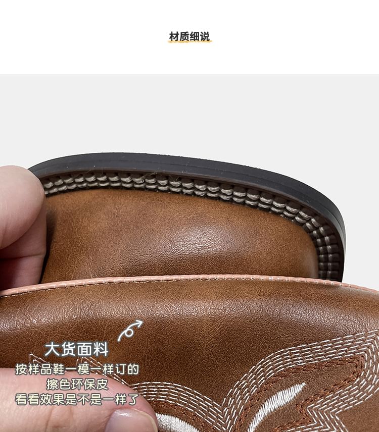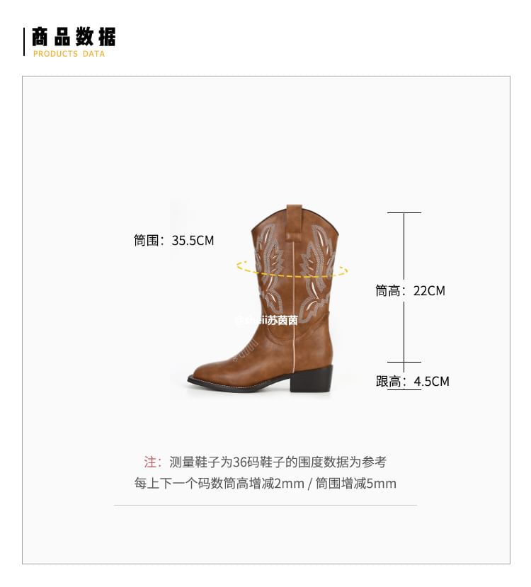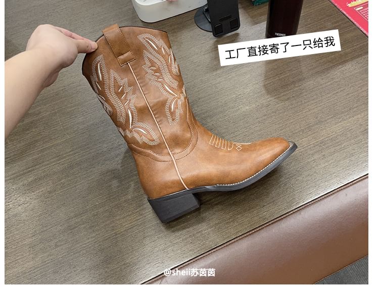 Embroidered Chunky Heel Mid