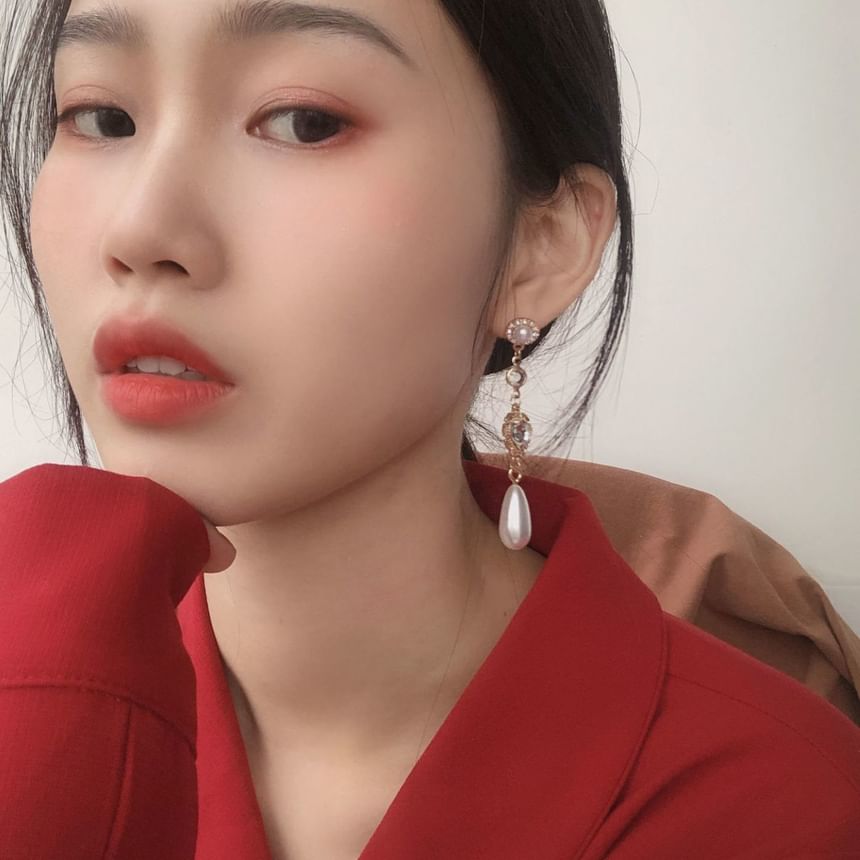 Heart Rhinestone Faux Pearl Alloy Dangle Earring