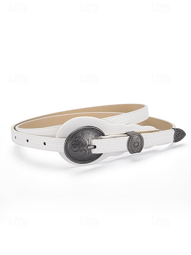 Leather Women's Faux Western with Carved Belt Vintage Waist