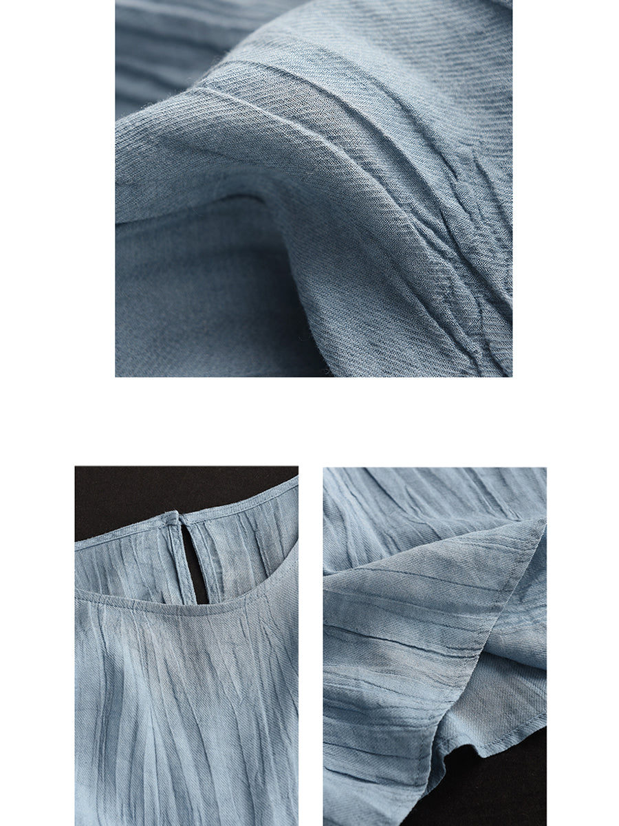 Robe d'été artistique à bretelles unies en ramie pour femmes QW1014