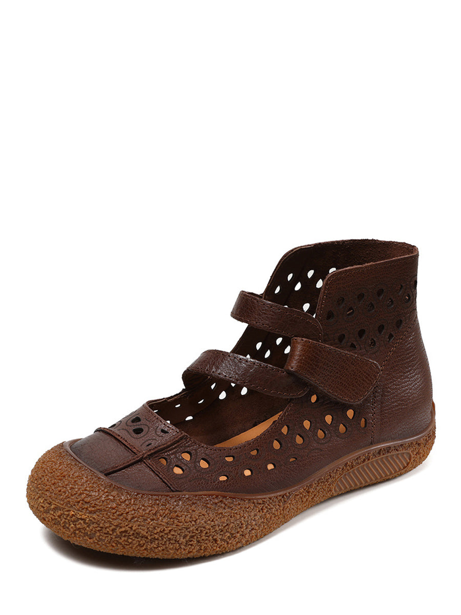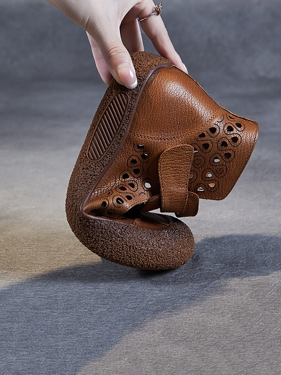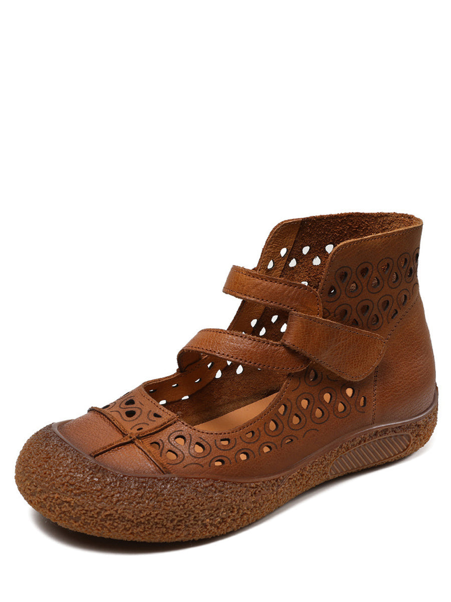 Sandales plates en cuir découpées vintage d'été pour femmes SC1007