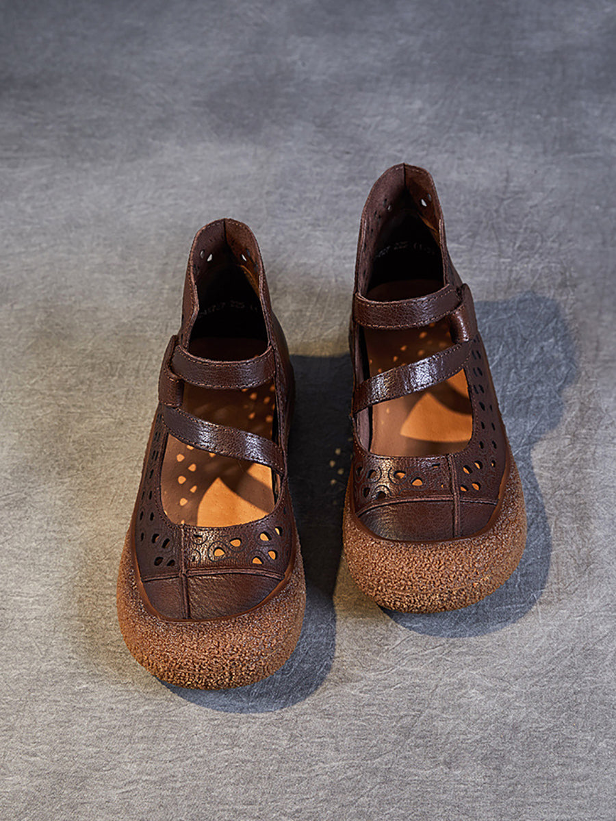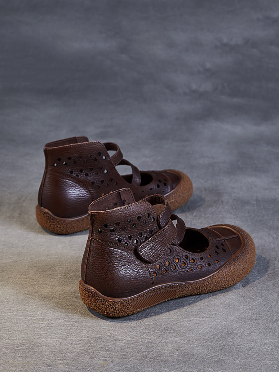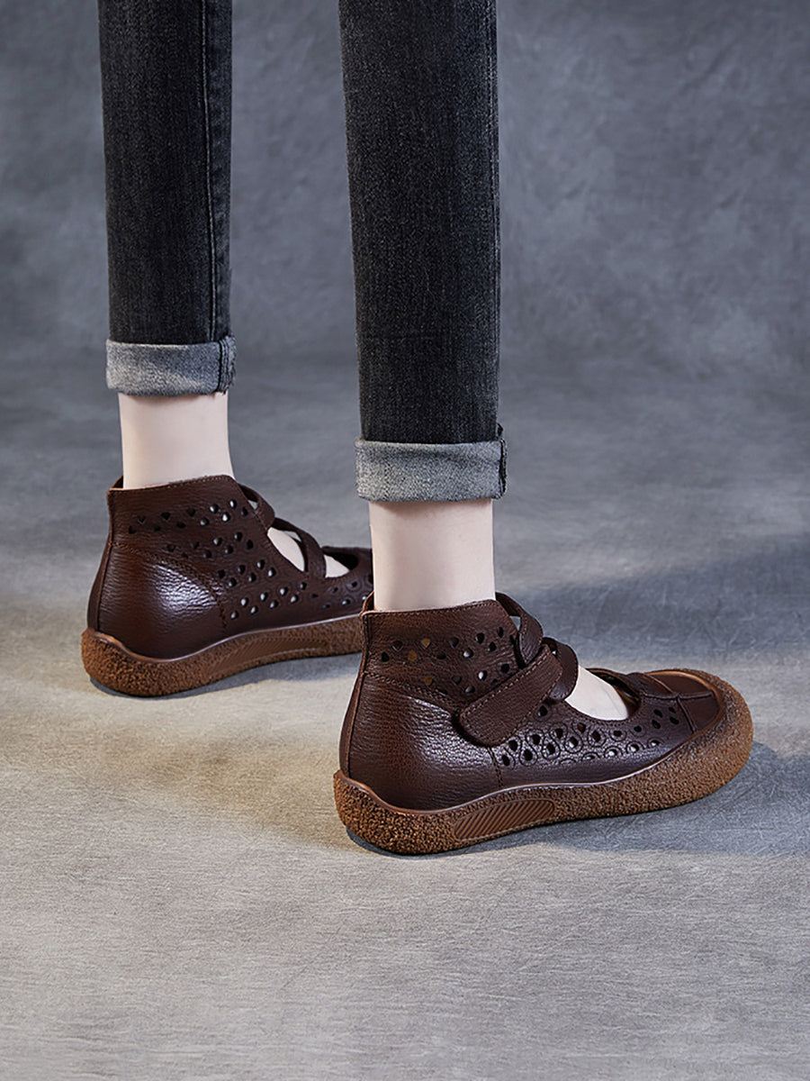 Sandales plates en cuir découpées vintage d'été pour femmes SC1007