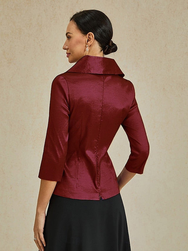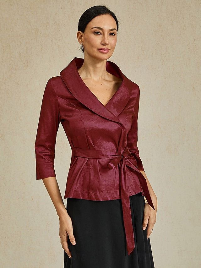 Fabric: Taffeta, Gender: Women's, Tops Type: Evening Tops, Blouse, Occasion: Wedding Guest, Formal Wear, Cocktail Attire, Semi Formal, Evening Party, Design: Tie Front, Style: Modern, Elegant, Metallic, Formal, Casual, Wedding, Stylish, Fit Type: Form Fit, Neckline: V Neck, Sleeve Length: 3/4 Length Sleeve, Elasticity: Stretchy, Look After Me: Washable, Wash with similar colours, Top Length: Regular Tops, Pattern: Solid Color, Plain, Season: Spring, Fall, Winter, Summer, Fit EU Size: S:34/36;M:38/40;L:42/44;XL:46;2XL:48/50, Fit UK Size: S:6/8;M:10/12;L:14/16;XL:18;2XL:20, Fit US Size: S:4/6;M:8/10;L:12/14;XL:16;2XL:18/20,