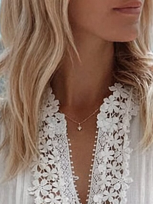 Fabric: Polyester, Tops Type: Blouse, Gender: Women's, Design: Lace, Buttons, Occasion: Daily, Style: Stylish, Casual, Fit Type: Regular Fit, Neckline: High Neck, Sleeve Length: Long Sleeve, Elasticity: Inelastic, Look After Me: Washable, Hand wash, Machine wash, Top Length: Regular Tops, Pattern: Solid Color, Season: Summer, Fall, Spring,
