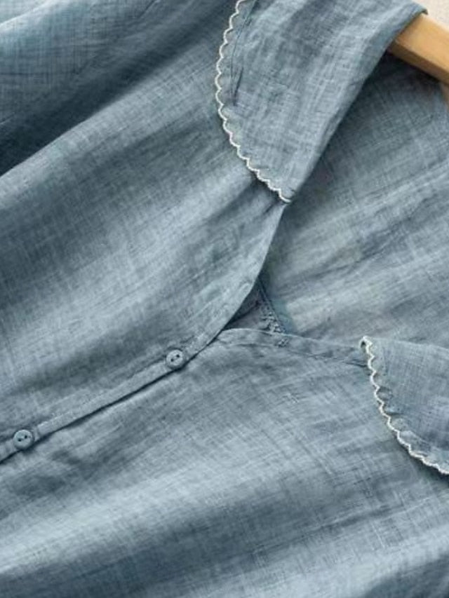 Women's Cotton Linen Shirts Solid Color Basic Casual Short