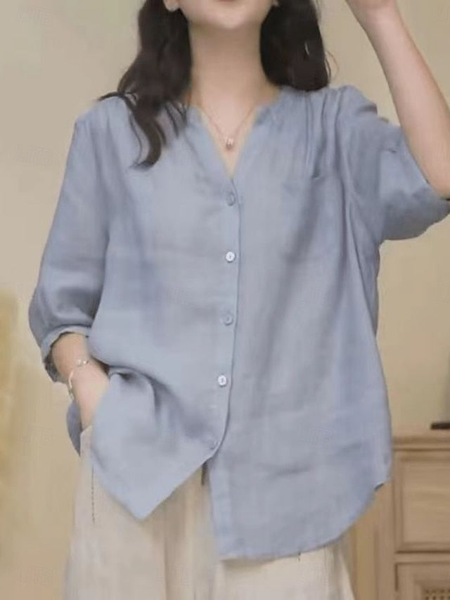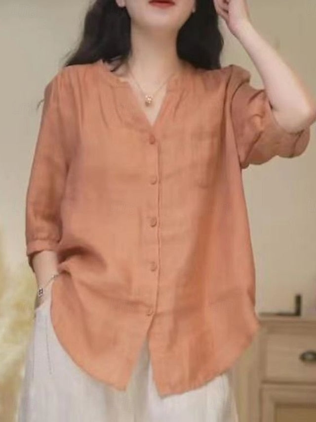 Women's Cotton Linen Shirts Solid Color Daily Basic Casual