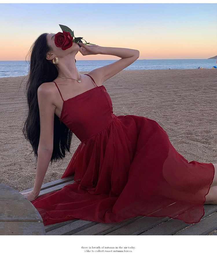 Spaghetti Strap Asymmetrical Sheer A-Line Dress