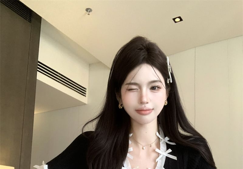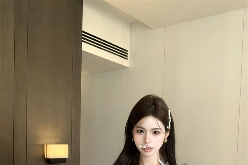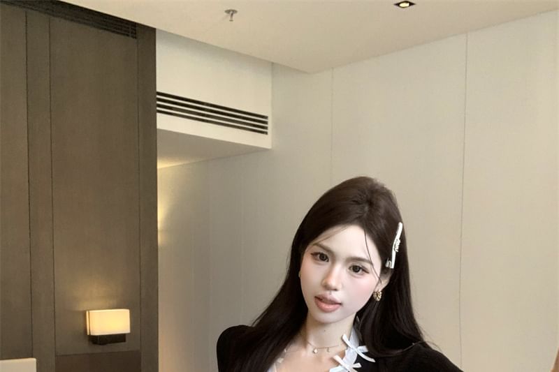 Accent Top Plain Bow V-Neck Cap-Sleeve