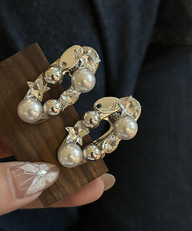 Made of fine Metal Alloy Zircon Pearl Star A Pair.