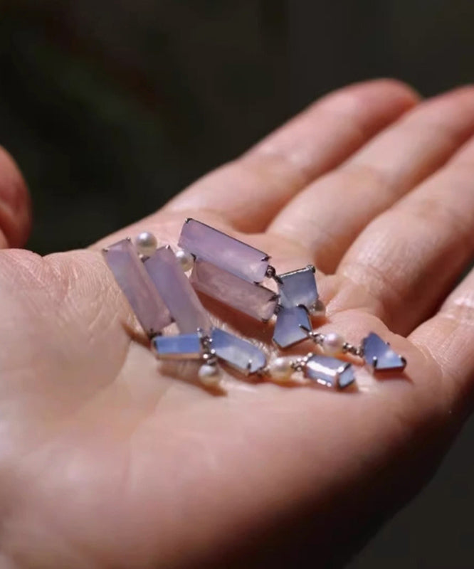 Asymmetrical Earrings Chalcedony Drop Retro Alloy Purple Tassel