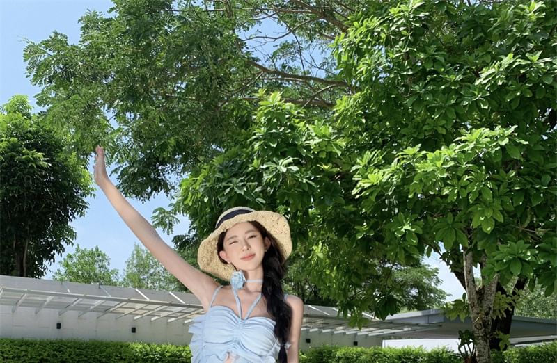 Spaghetti Strap Plain Asymmetrical Midi A-Line Dress