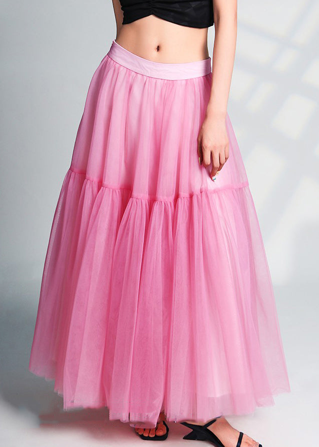 Beautiful Pink Wrinkled High Waist Tulle Skirts Summer AB1049