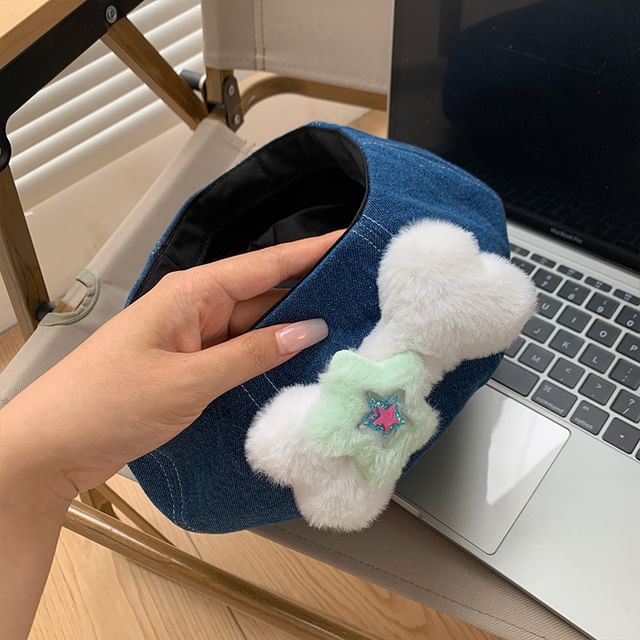 Bone Accent Washed Denim Beret