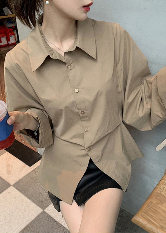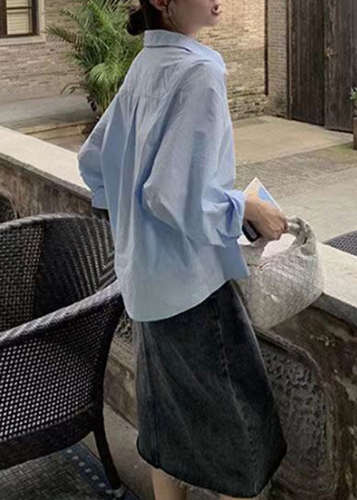 Loose White Peter Pan Collar Button Patchwork Cotton Blouse Spring