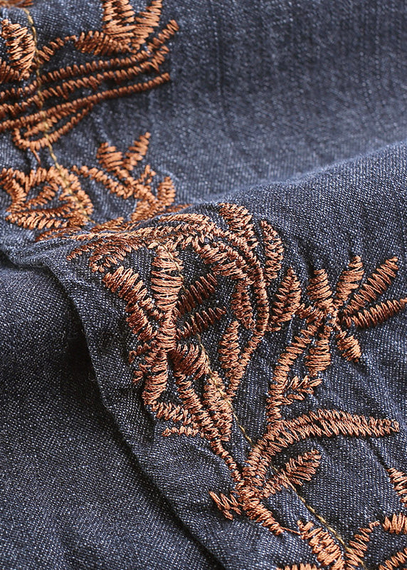 Boutique Blue Embroidered Pockets Cotton Crop Pants Skirt Summer BV072
