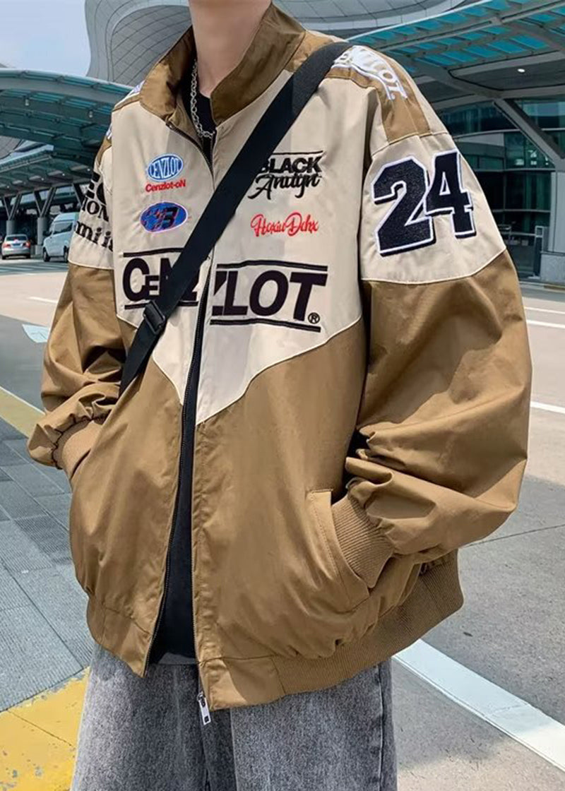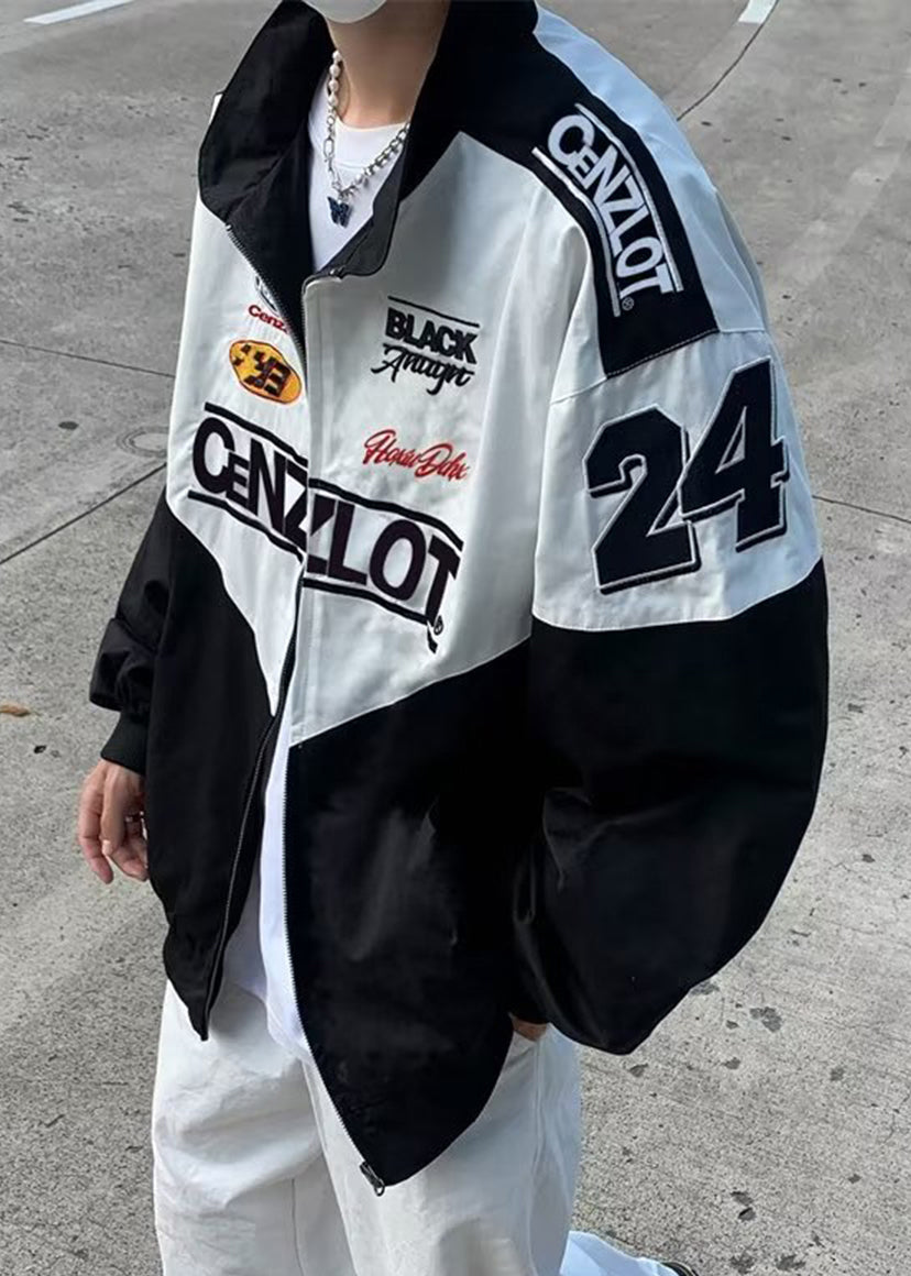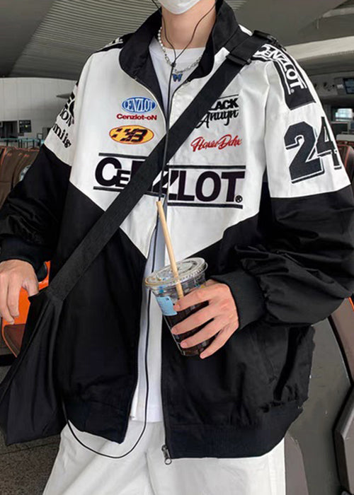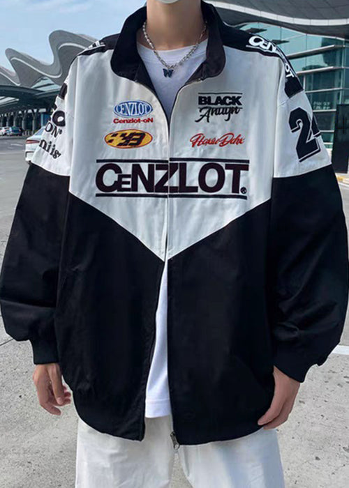 Casual Black Zippered Letter Patchwork Cotton Men Coat Spring TC001