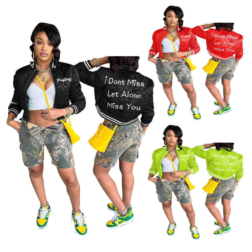 Casual Cotton Letter Embroidery Long Sleeve Women's Jacket AD345