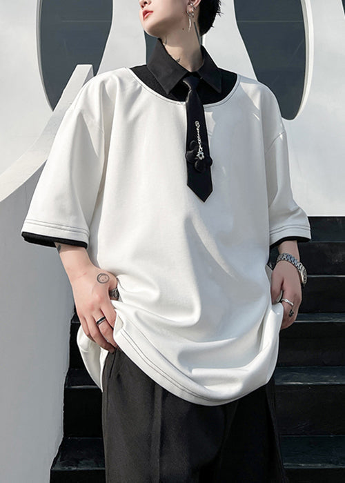 Cotton Original Design Shirts Polo Loose Mens Green Patchwork