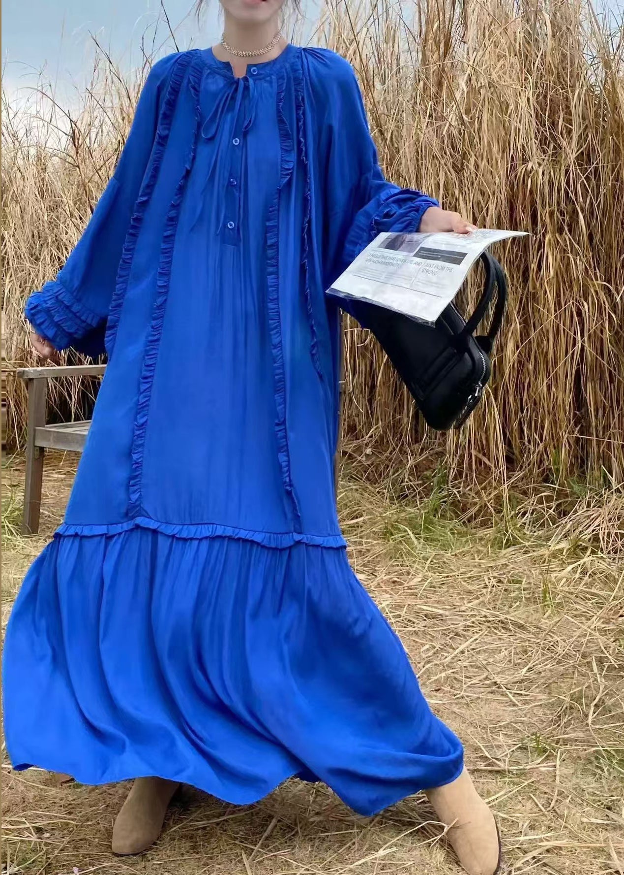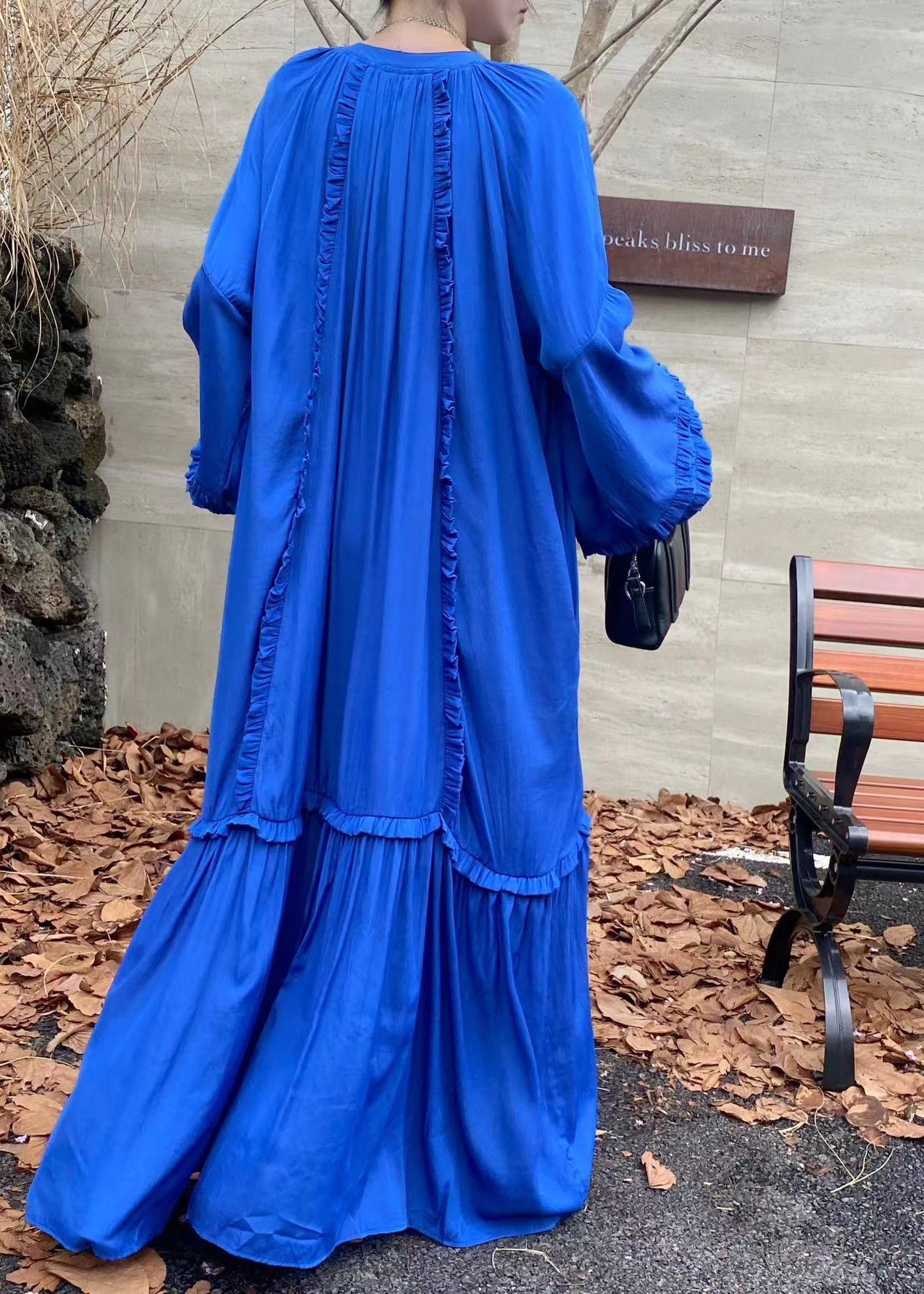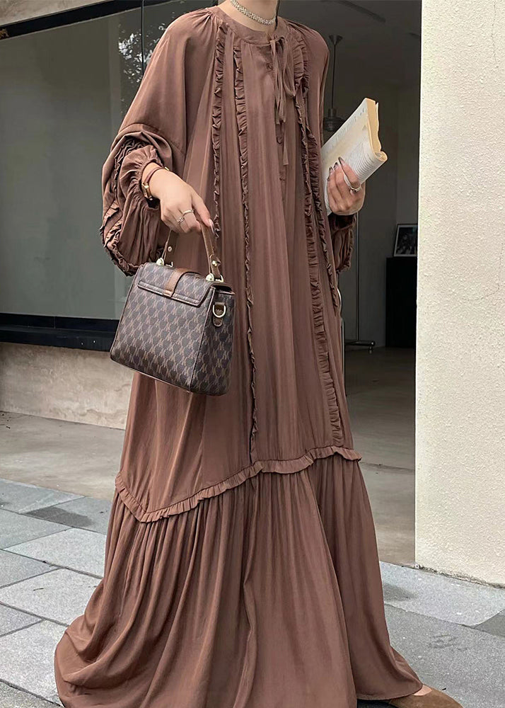 Handmade Fluorescent Green Ruffled Oversized Cotton Vacation Dresses Fall