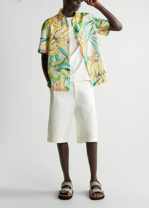 Cute Yellow Peter Pan Collar Print Men Shirts Short Sleeve HG026