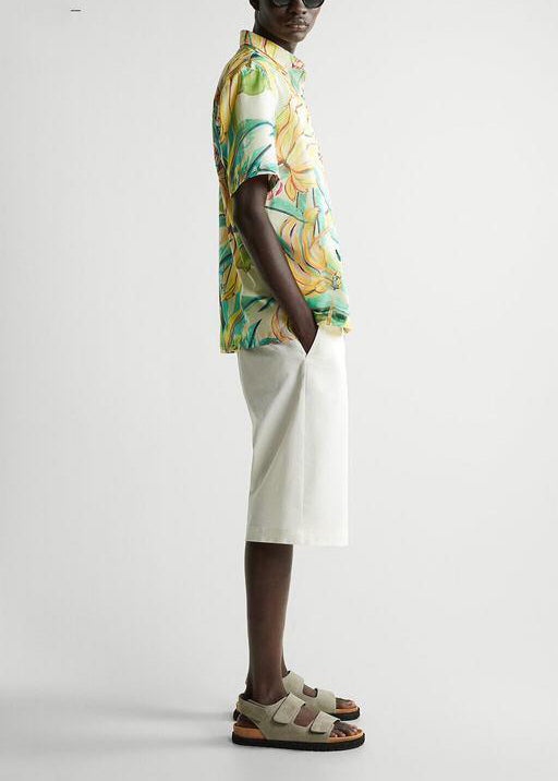Sophisticated Yellow Men's Shirts with a Charming Peter Pan Collar and Short Sleeves, Featuring a Playful Printed Design - HG026
