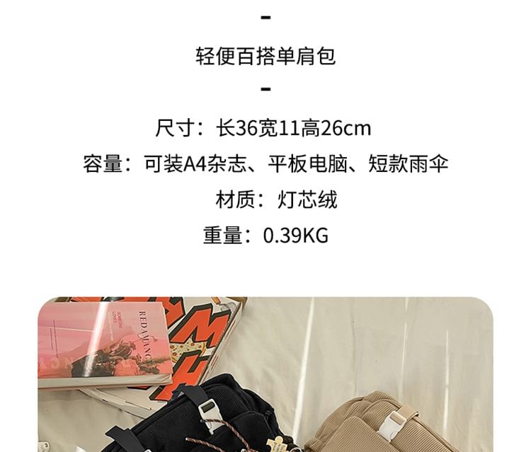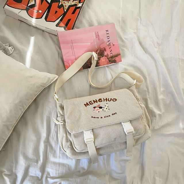 Dog Applique Corduroy Messenger Bag