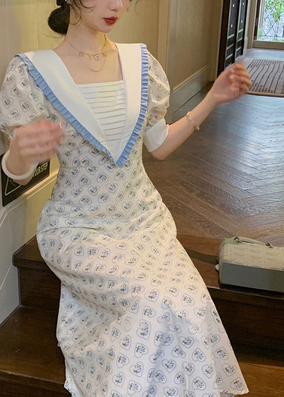 Elegant Pink Ruffled Print Lace Up Cotton Dresses Summer ZL032