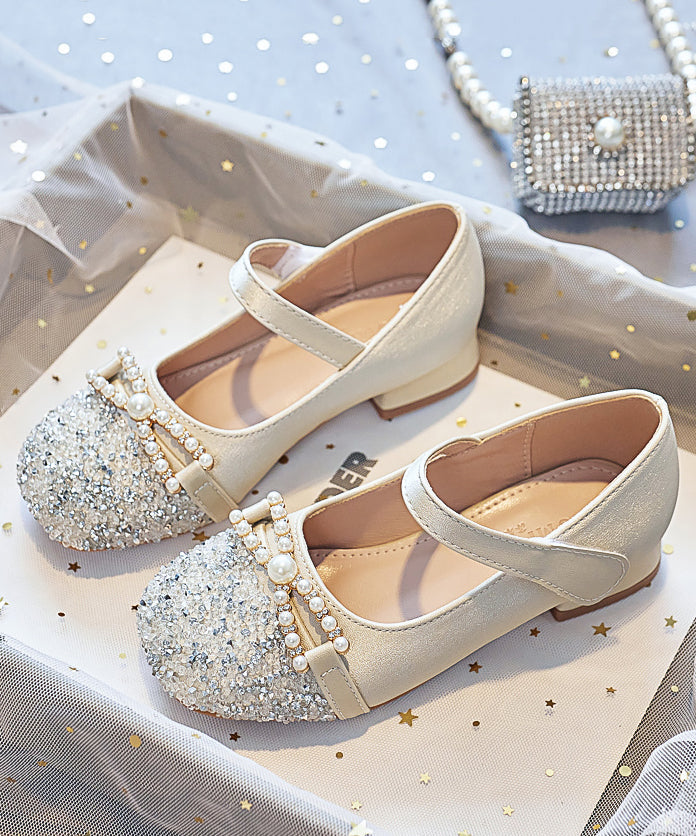 Flat Baby Leather Pink Bead Girls Shoes Nail Faux Buckle Zircon
