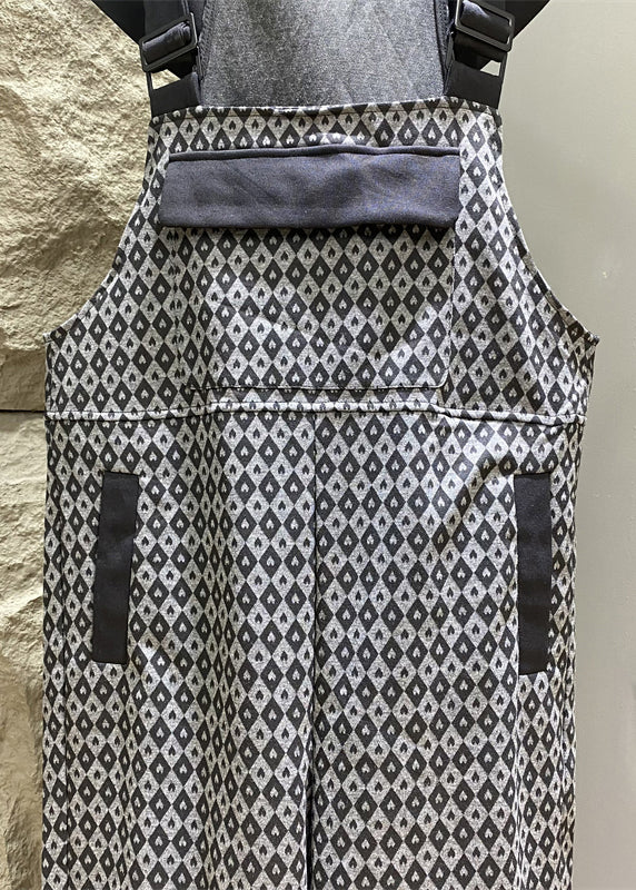 French Grey Hooded Print Pockets Cotton Jumpsuits Summer KK012