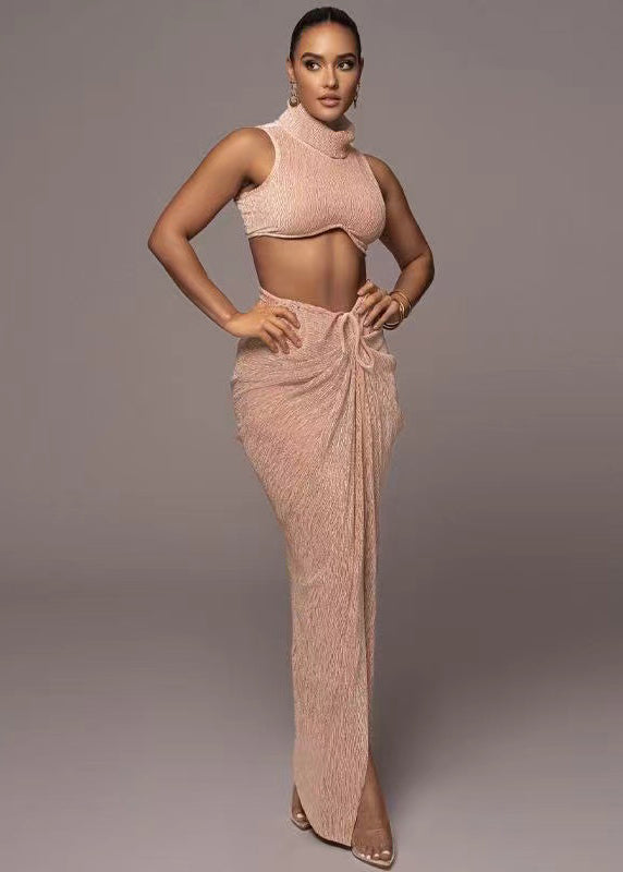 Indulge in the sophistication and elegance of our French Navy Turtleneck Two Piece Set. Crafted from luxurious cotton, its sleeveless design and delicate lace-up detail add an exclusive touch to this stunning ensemble.