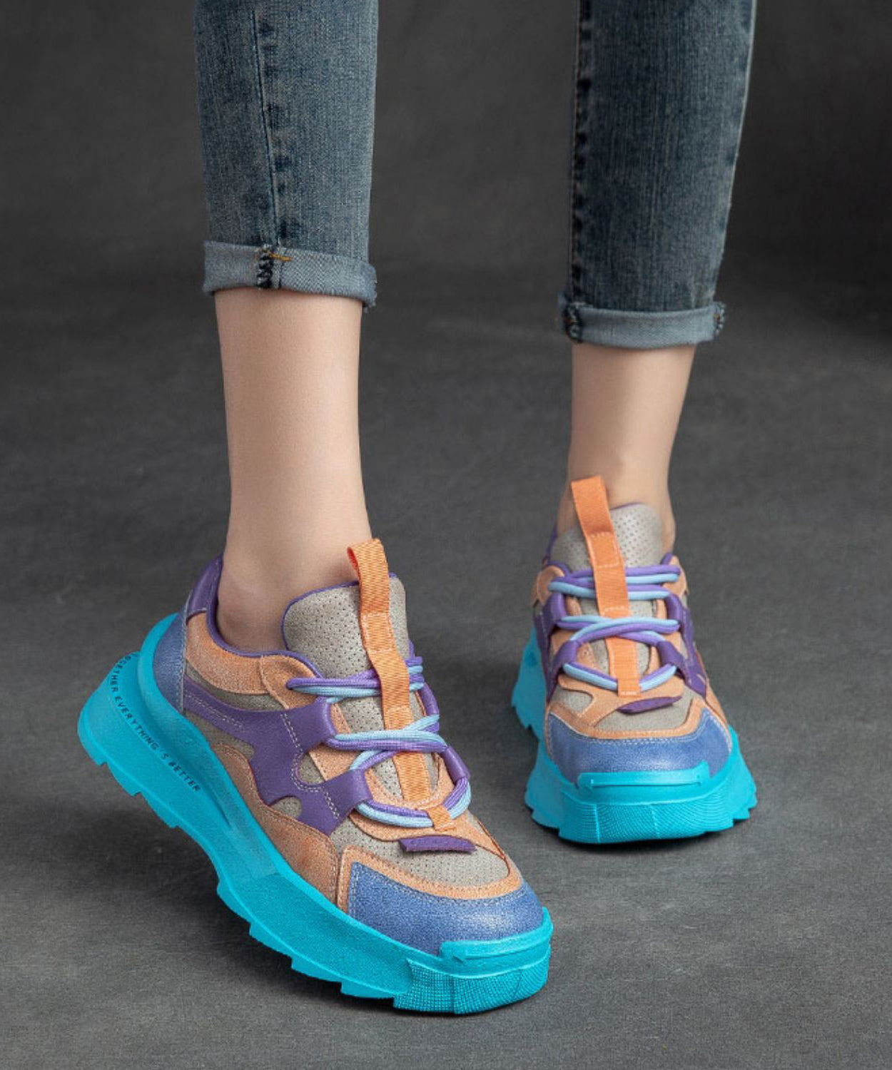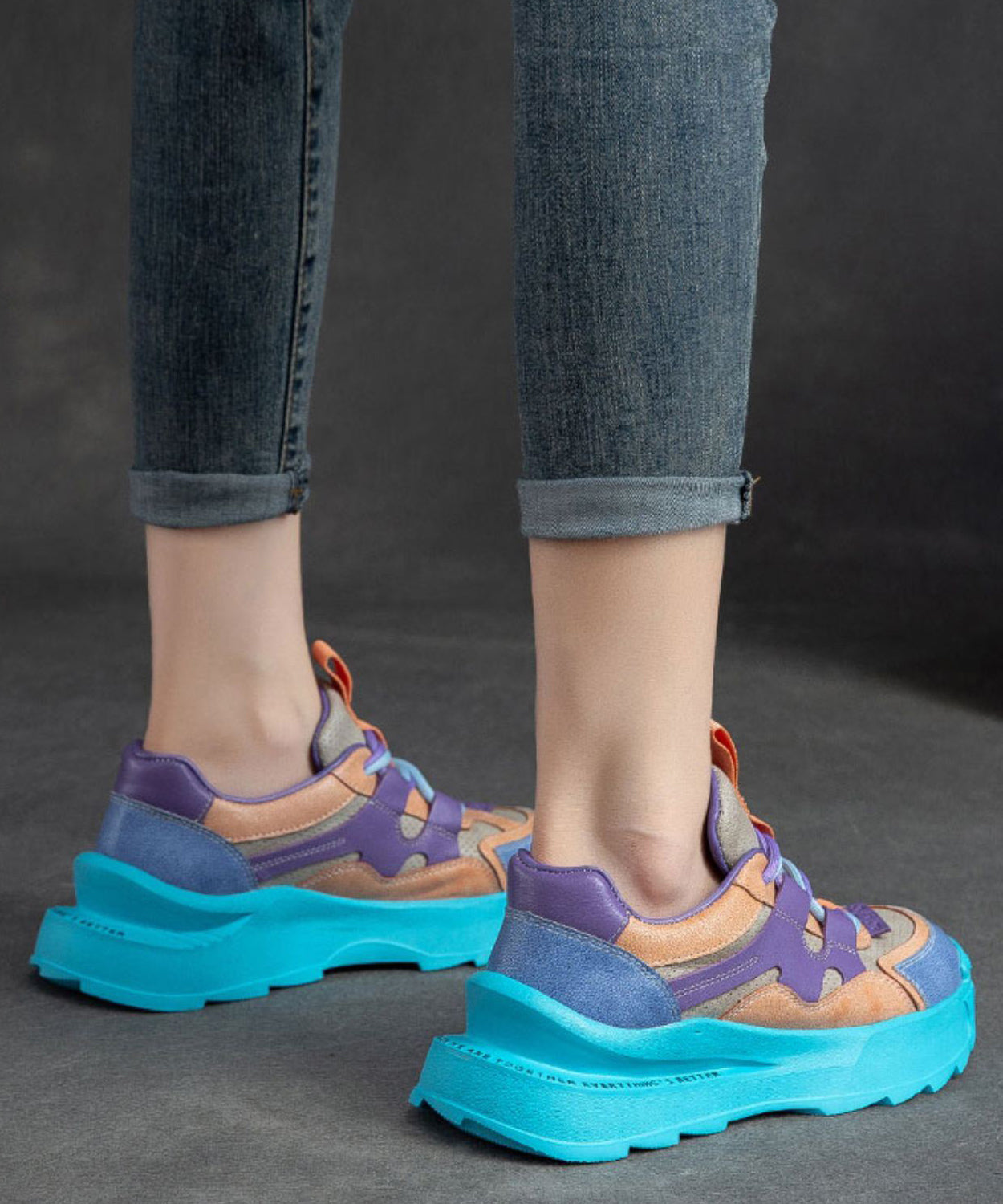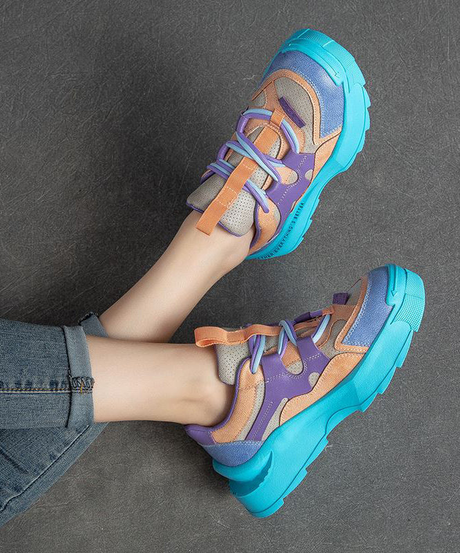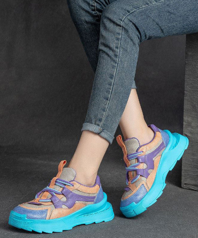 Handmade Blue Lace Up Cowhide Leather Loafers Shoes JJ019