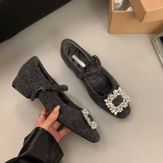 Heel Jane Square Buckled Toe Block Rhinestone Mary Pumps