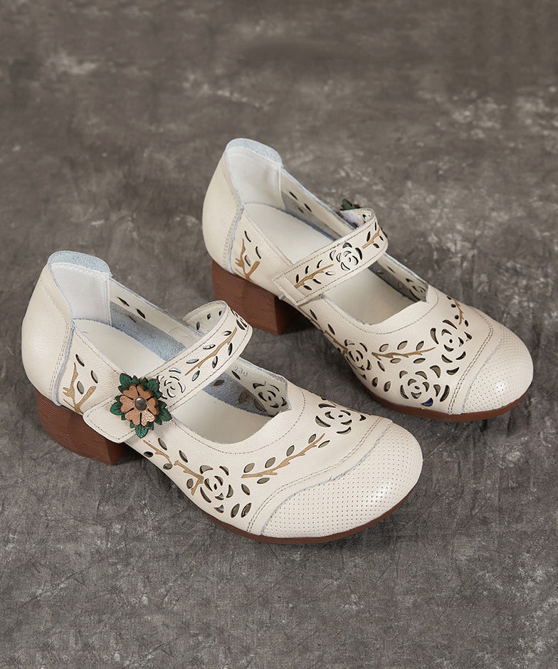 Hollow Chunky Out Heel Leather Chocolate Cowhide Boho Splicing