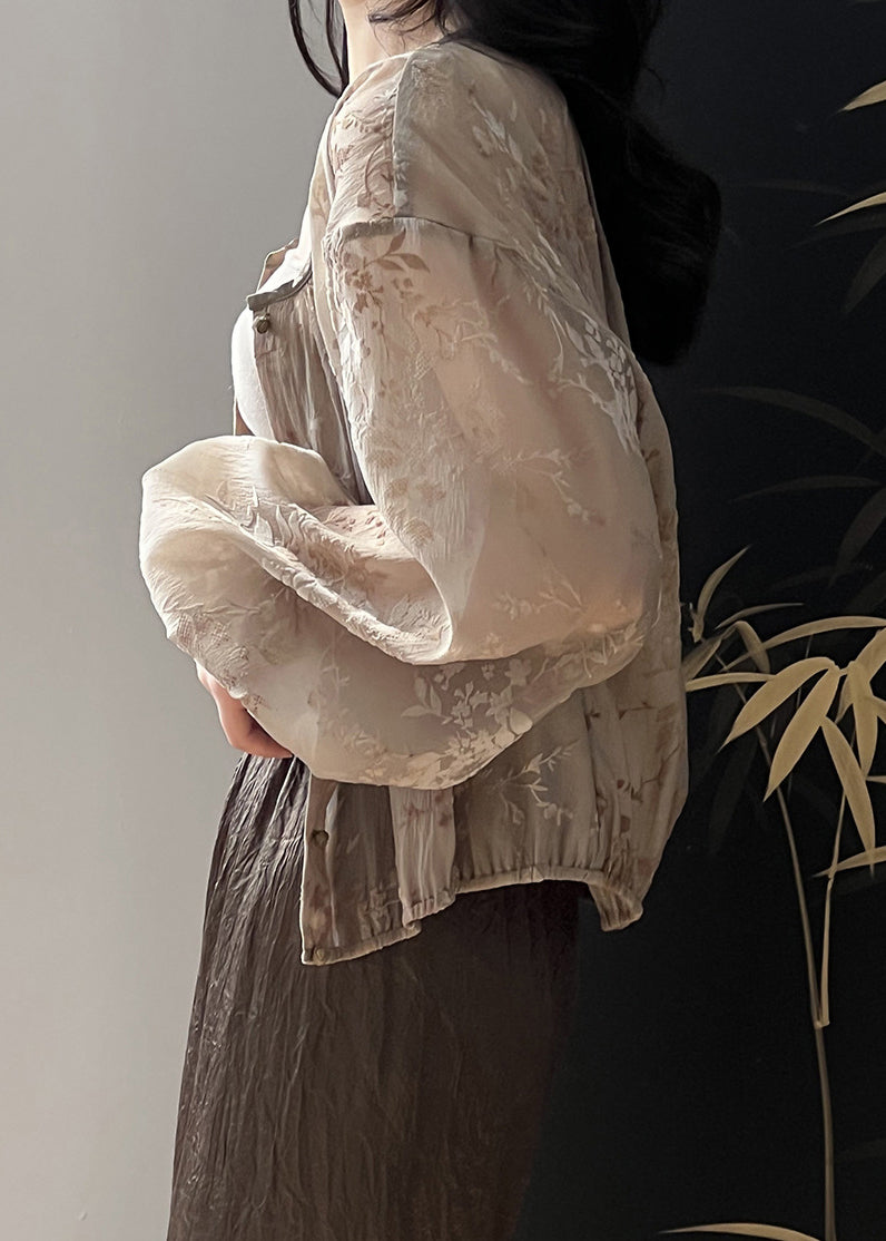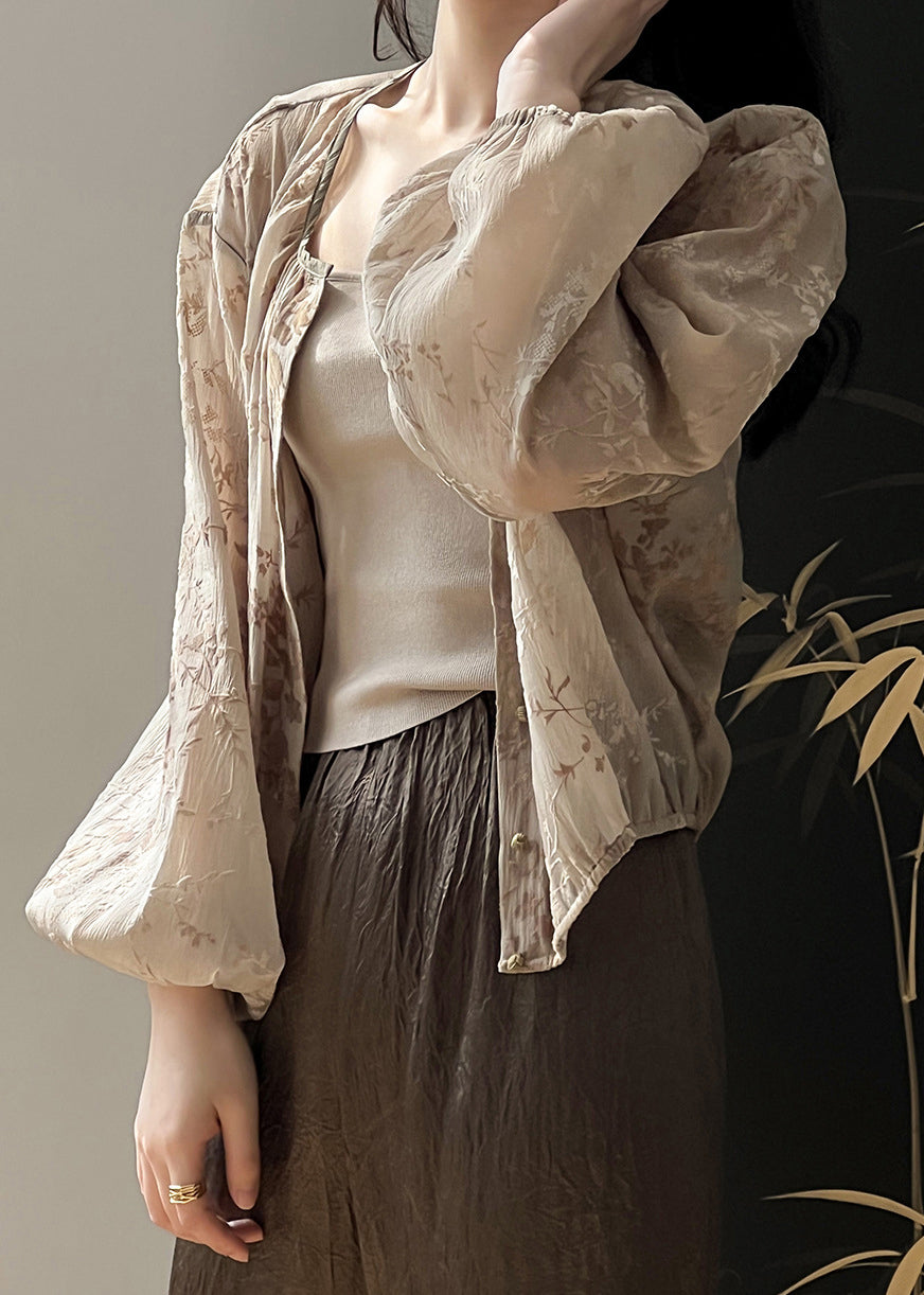 Jacquard Brown O Neck Button Coats Long Sleeve OP1051