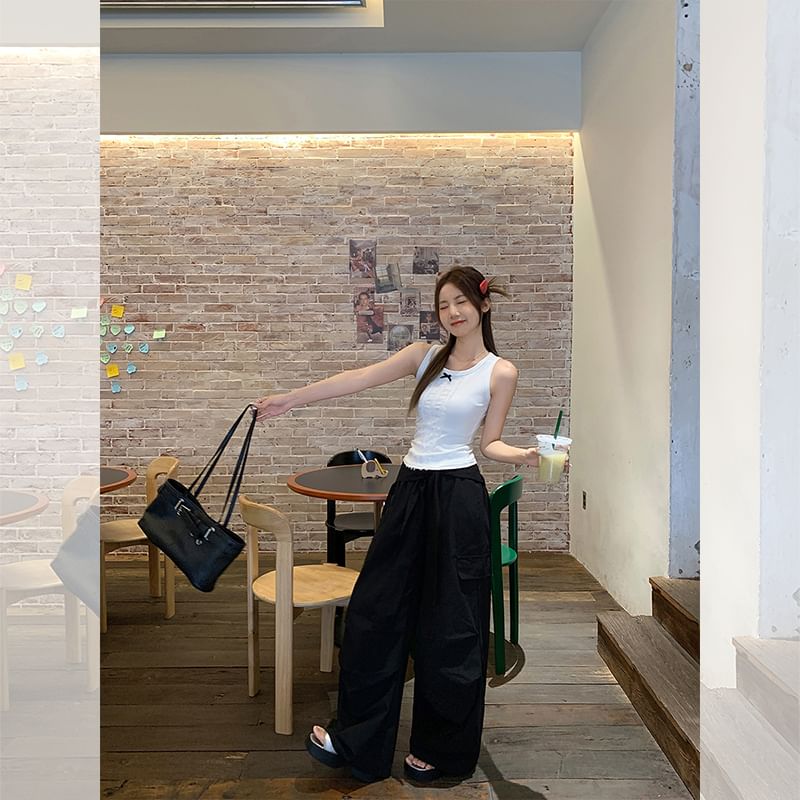 Lace Top Bow Fit Neck Slim Crew Panel Tank
