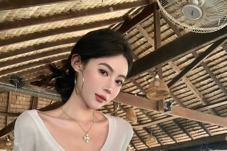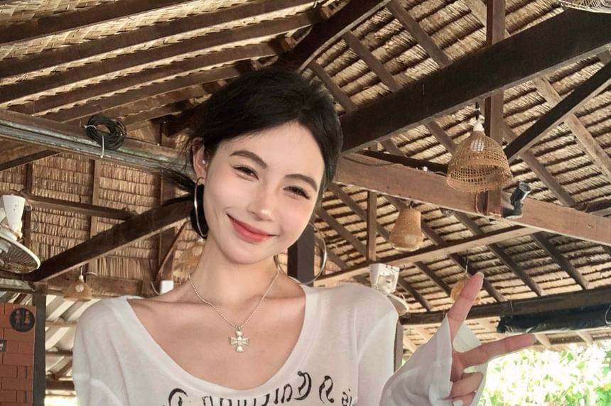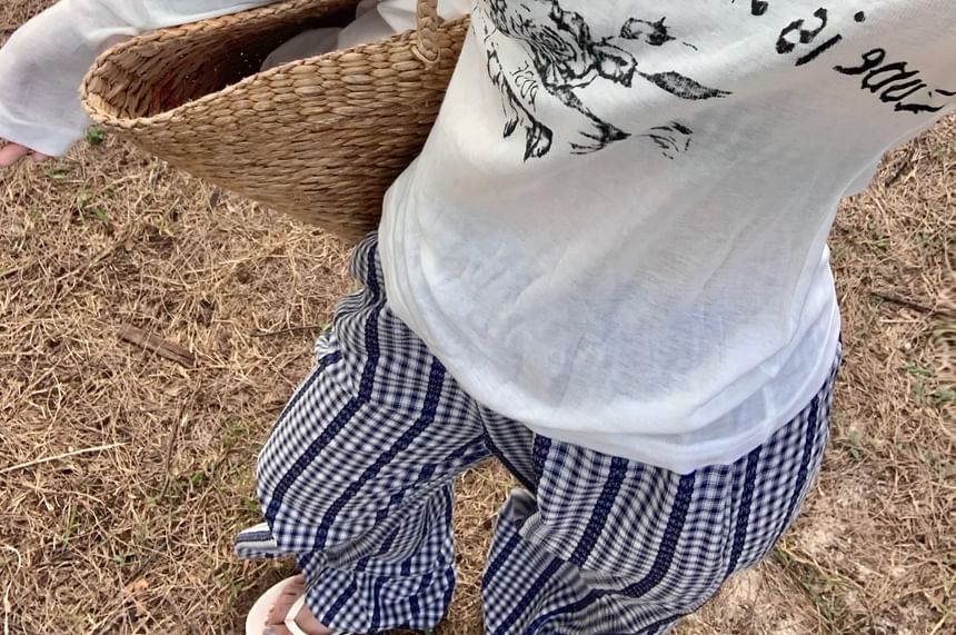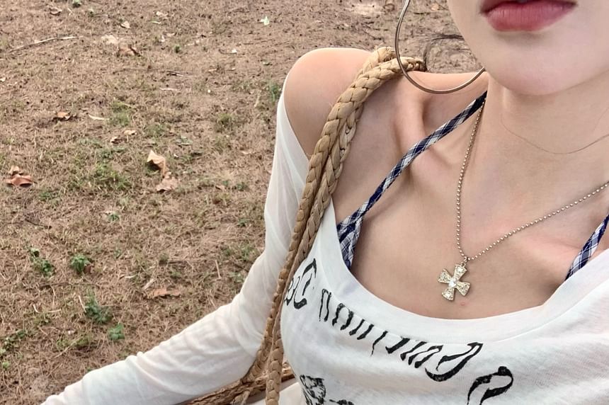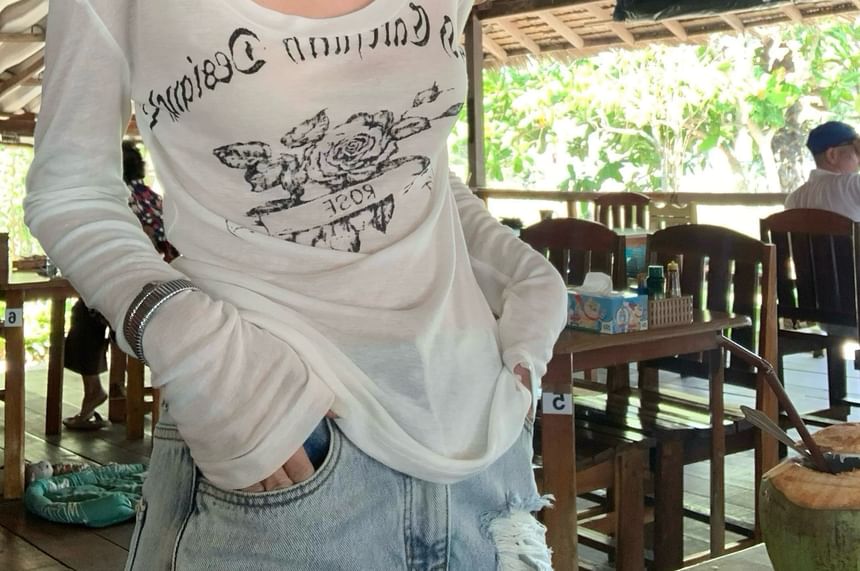 Long-Sleeve One-Shoulder Lettering T-Shirt
