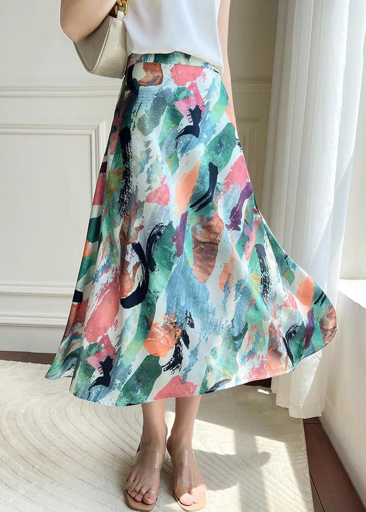 Loose Green Print High Waist Silk Skirt Summer KJ016