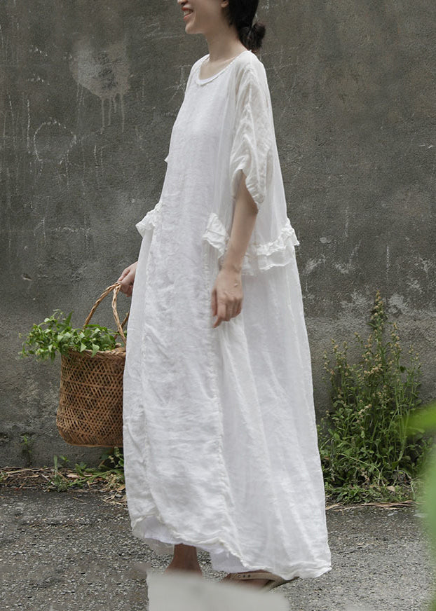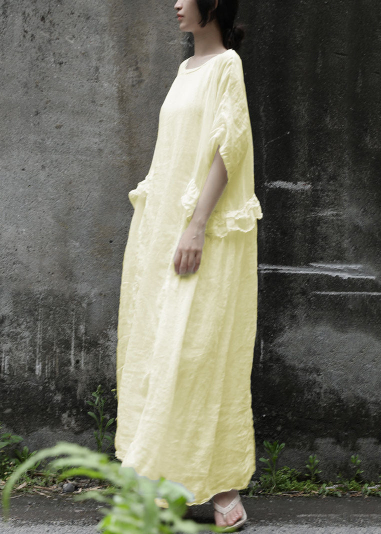 Loose Pink Ruffled Solid Linen Two Pieces Set Summer MN084