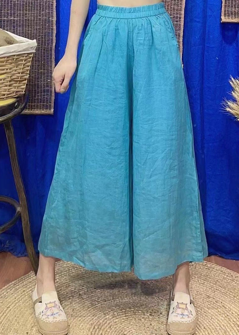 Loose Rose Solid Pockets Elastic Waist Linen Crop Pants Summer VV092