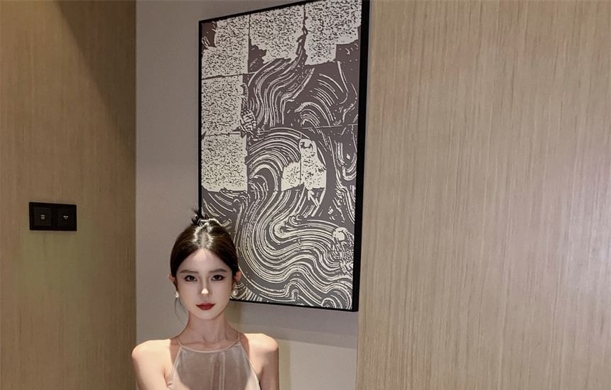 Halter Neck Velvet Maxi A-Line Dress