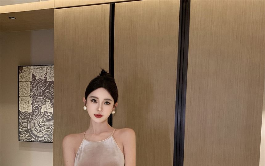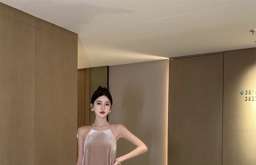 Maxi Dress Velvet A-Line Neck Halter