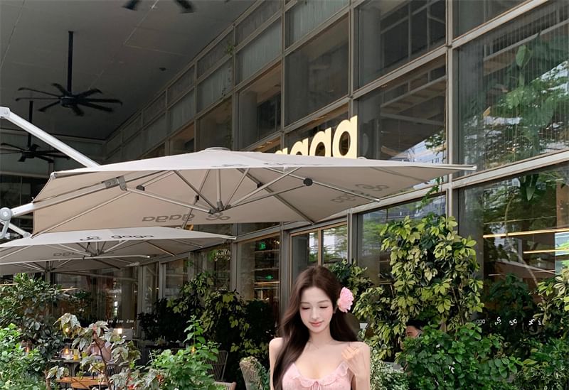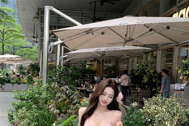 Maxi Print Dress Spaghetti Sheath Strap Floral Bow Ruffle