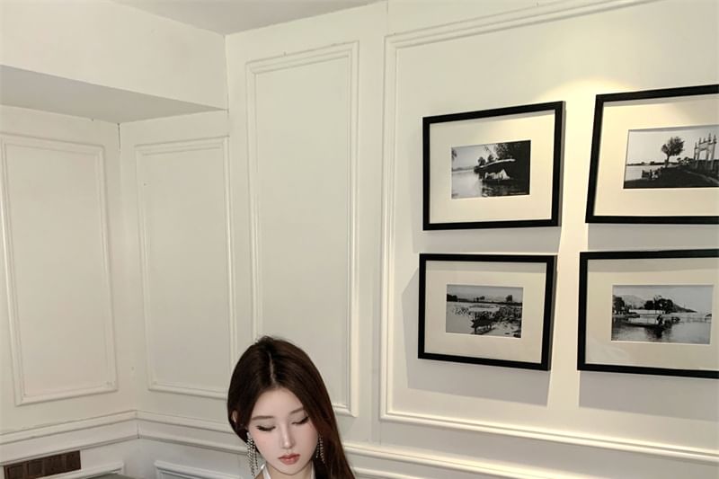 Mini A-Line Satin Dress Rhinestone Halter-Neck